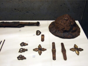 Bild: Fundstücke, gefunden im Grab eines Mannes in Kölked, 6.-7.Jh.