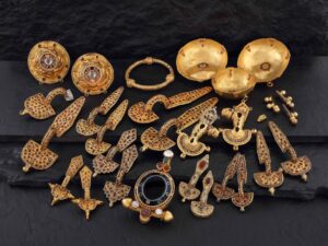 - Szilágysomlyó-Schatz: Ein bedeutender Hortfund (zuerst wurden Stücke 1797 und dann nochmal 1889 entdeckt im damaligen Ungarn, heutigem Rumänien, die bis heute untersucht werden) der ebenso wie andere Fundplätze wichtige Zeugnisse über die materielle Kultur der Gepiden liefert.