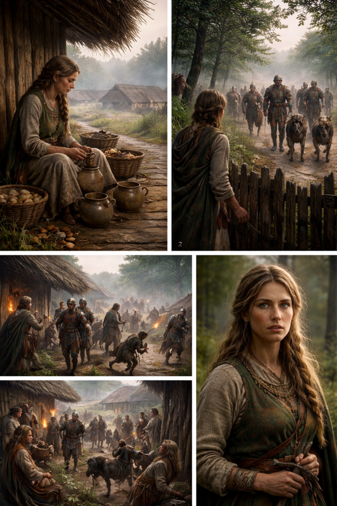 Die Hunde knurren, bellen, springen gegen die Ketten. Ich sehe, wie sie Angst in den Kindern auslösen, und ich versuche, sie zu beruhigen. Ich flüstere leise, so wie es meine Mutter getan hat: „Still, das sind nur Tiere. Beobachte sie, aber fürchte dich nicht.“ Und während ich spreche, registriere ich jeden Schritt der Römer, jedes Rattern der Rüstung, jeden Befehl. Wir sind klein, verletzlich, aber wir sind nicht hilflos. Wir kennen die Wälder, die Flüsse, die Pfade, die sie nicht sehen.